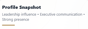 A leadership profile associated with strong influence, confident communication, and executive-level presence.